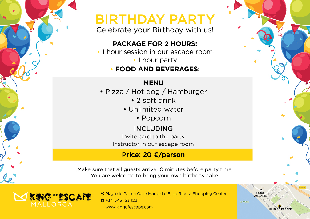In such cases please send us an e-mail (mallorca@kingofescape.es) to let us know the details of how many people and the date you would like to visit us so we can organize the groups upon availability.